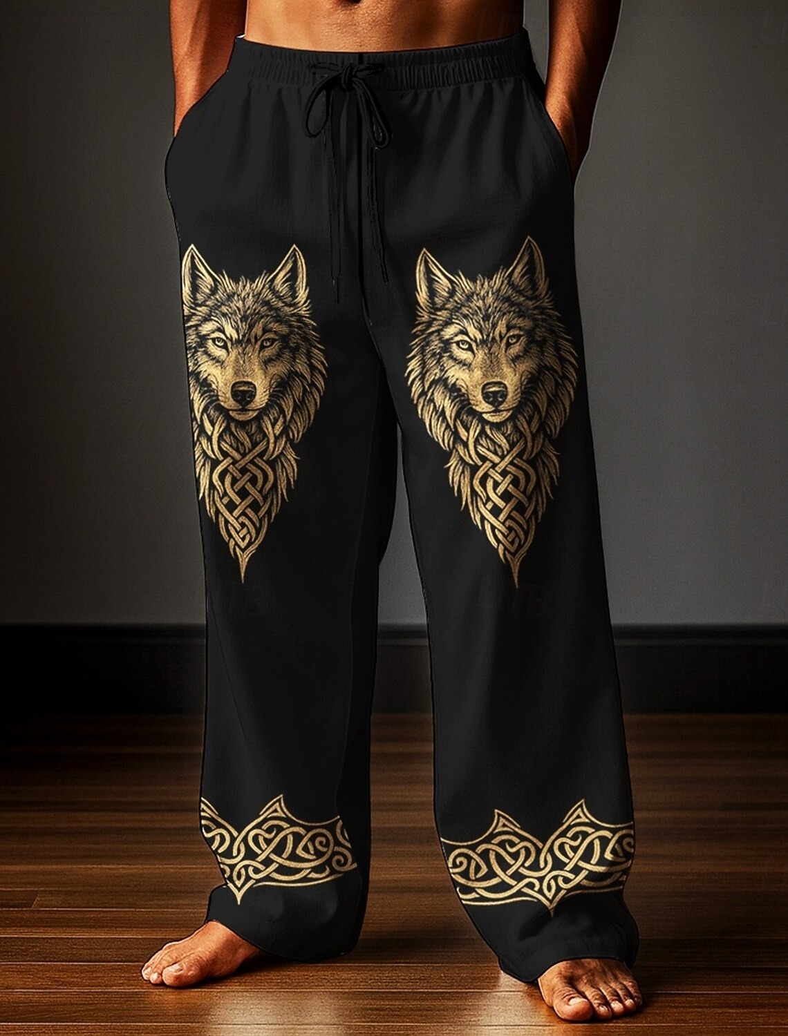 Men's Vintage Totem Wolf Pattern Casual Pants