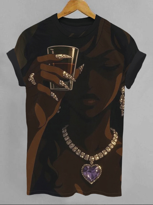 Women's Fashion Black Girl Anime Art Print Casual T-Shirt