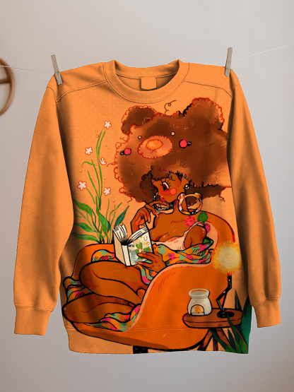 Women's Reading Lover Girl Print Casual Sweatshirt