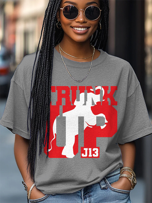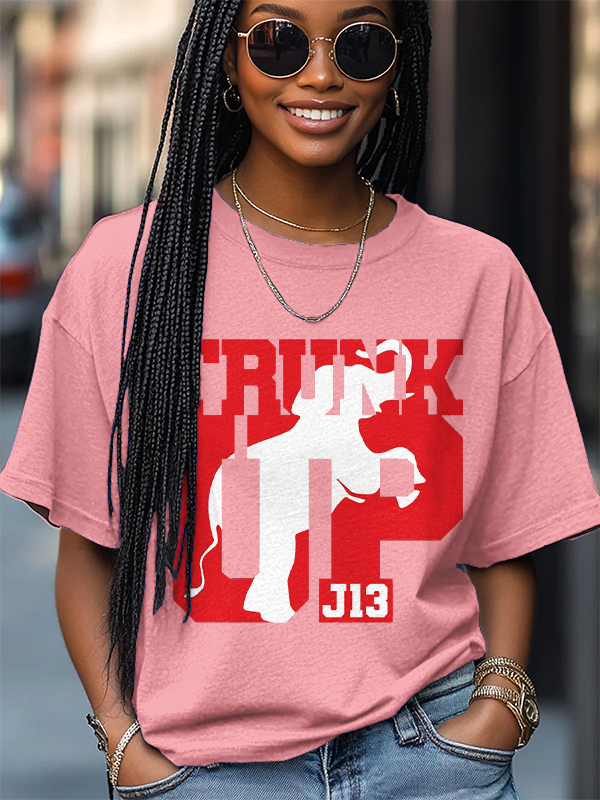 Women's Trunk Up Red Elephant J13 Print Cotton Casual T-Shirt