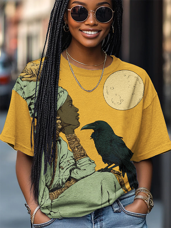 Women's Witch And Crow Print Casual T-Shirt